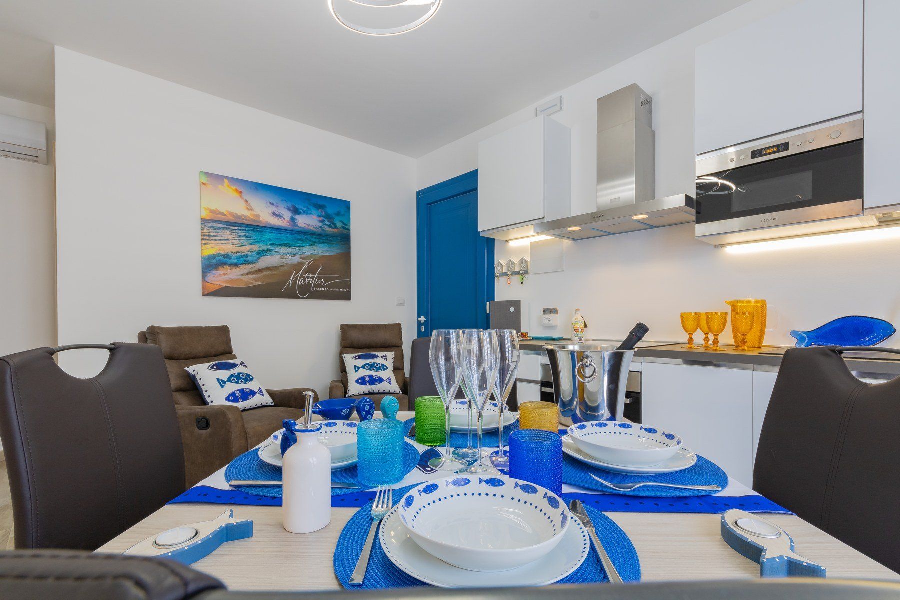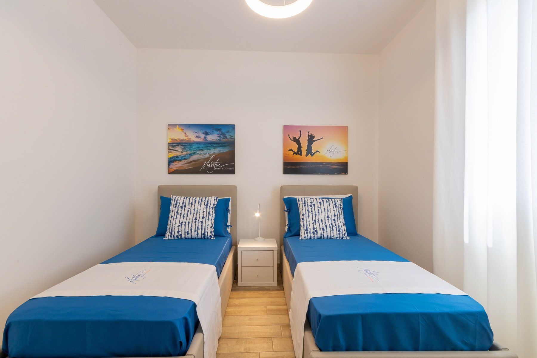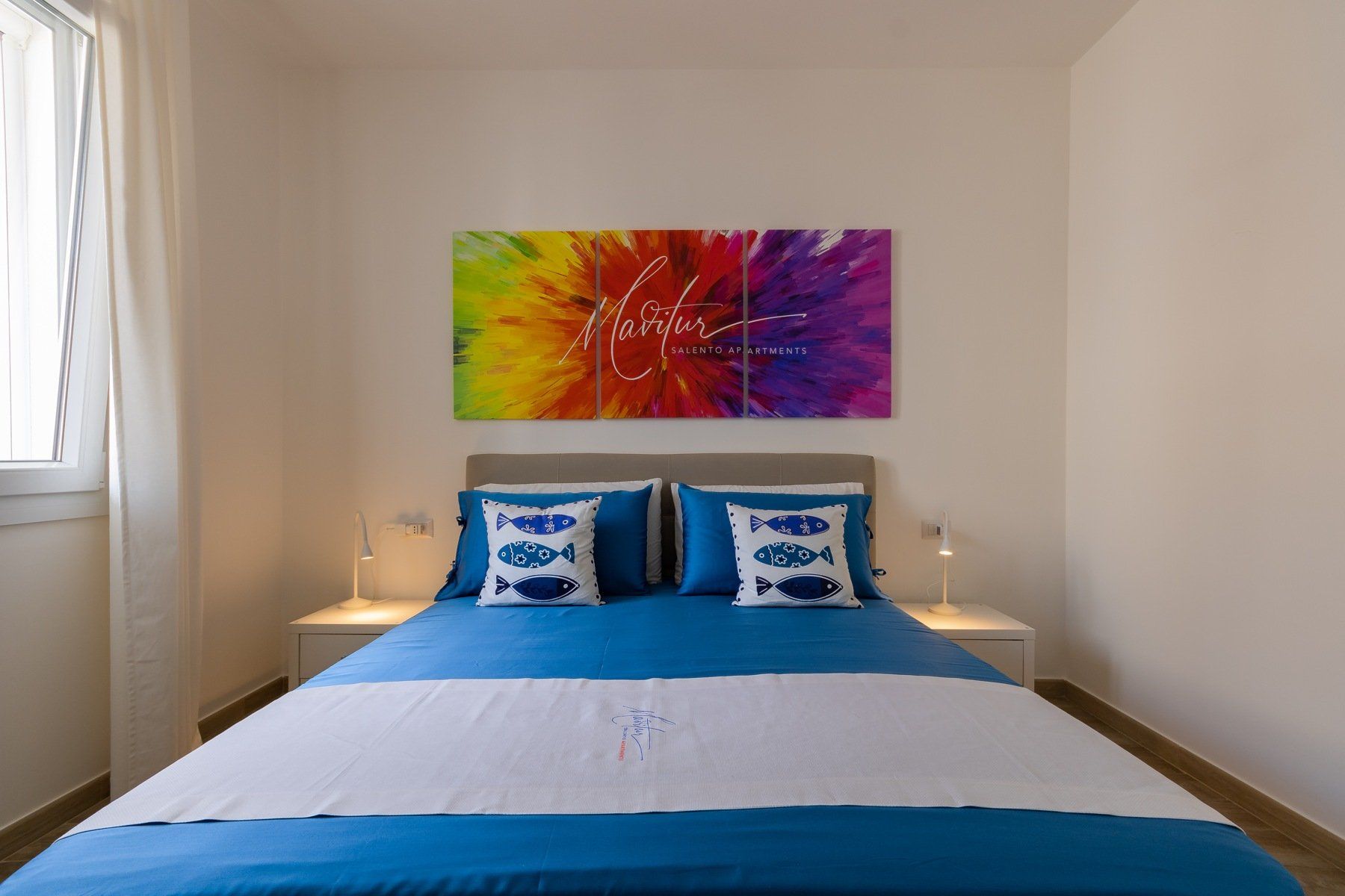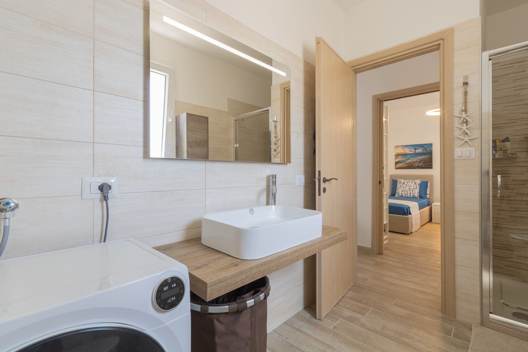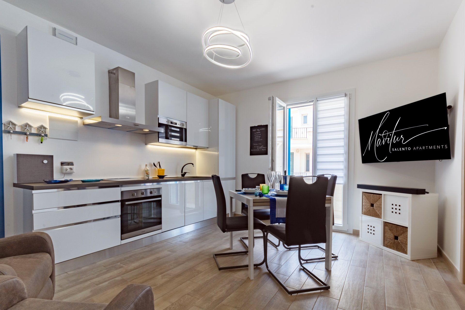 We offer for rent sea view apartments finely furnished with every comfort, two bedrooms, living room with sofa bed and full kitchen, a bathroom with shower, private parking, air conditioning, 55 "TV and free WiFi located in front of Isola Pazze del Regional Natural Park of the Litorale di Ugento LE. A large solarium terrace with pergola and barbeque is available for guests upon reservation, where it is possible to sit at the table for up to twelve people and then sit in the shady relaxation lounge. The most beautiful beaches of the Sea Ionio are just a few minutes away both on foot and by car. Located 20 km from Gallipoli and 30 km from Leuca, the apartments offer maximum tranquility even when you prefer to stay at home to enjoy the sun and the sea equally. perimeter courtyard and from the first floor apartment with balcony it is possible to reach the living terrace and solarium. Check-in online before arrival on the Vikey platform to obtain the access link to the apartments via email and, during the stay, to book the solarium terrace via smartphone.