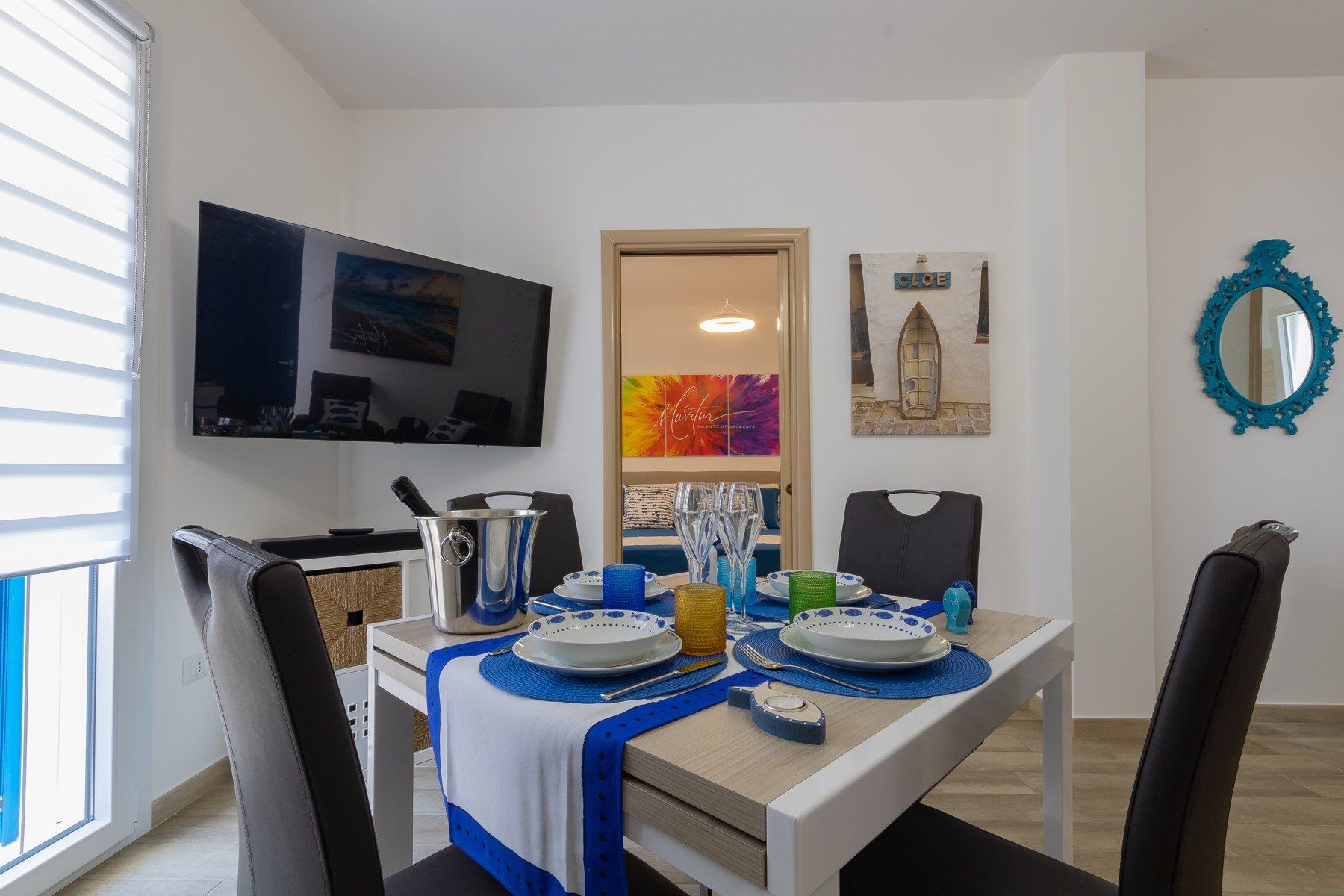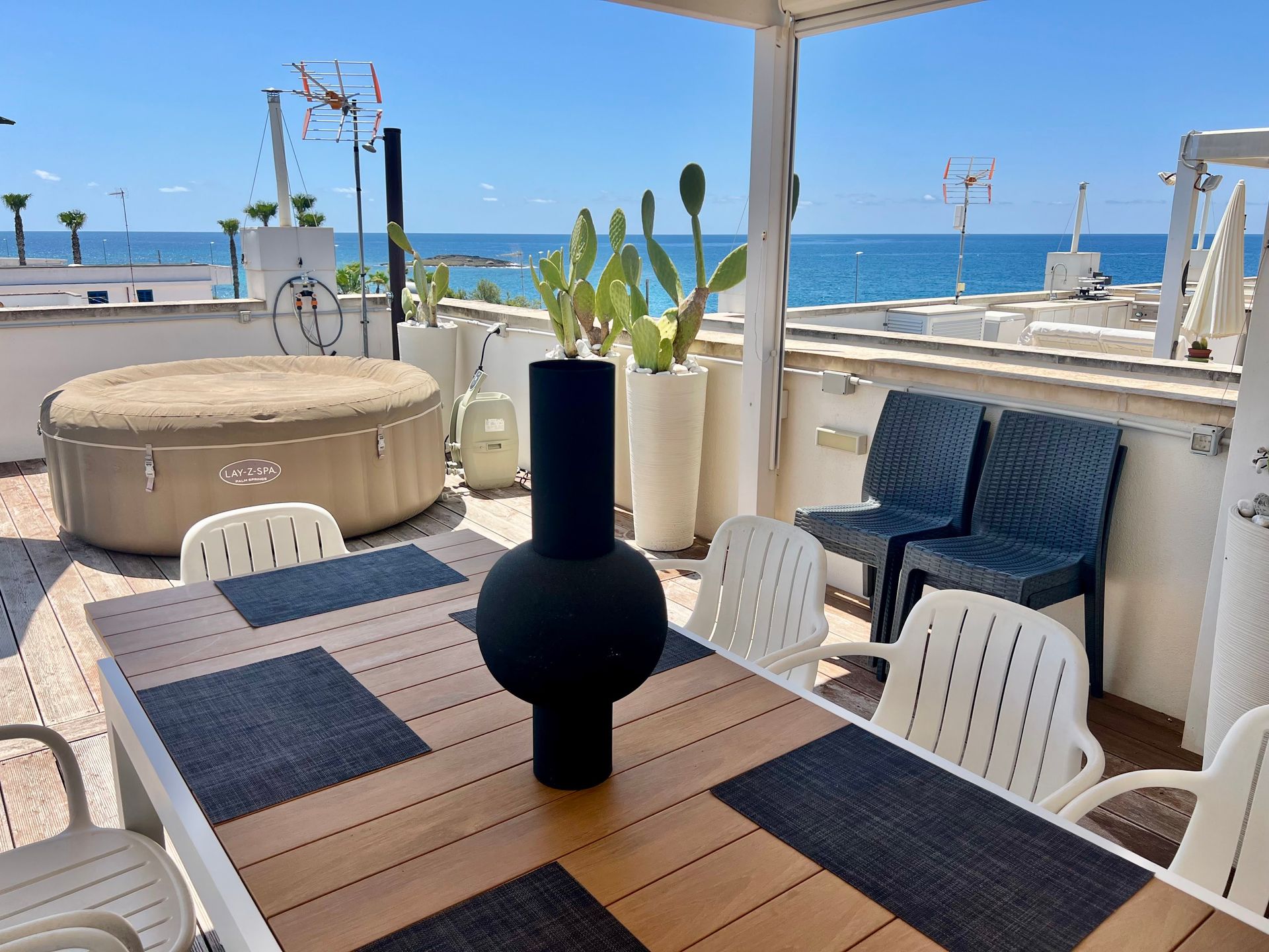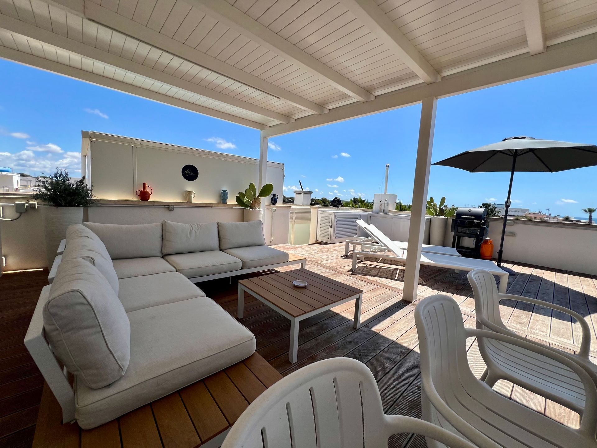 Offriamo in affitto appartamenti vista mare finemente arredati con ogni comfort, due camere da letto, soggiorno con divano letto e cucina completa, un bagno con doccia, parcheggio privato, aria condizionata, SMART TV 55" e WiFi situati di fronte all'Isola Pazze del Parco Naturale Regionale del Litorale di Ugento LE.