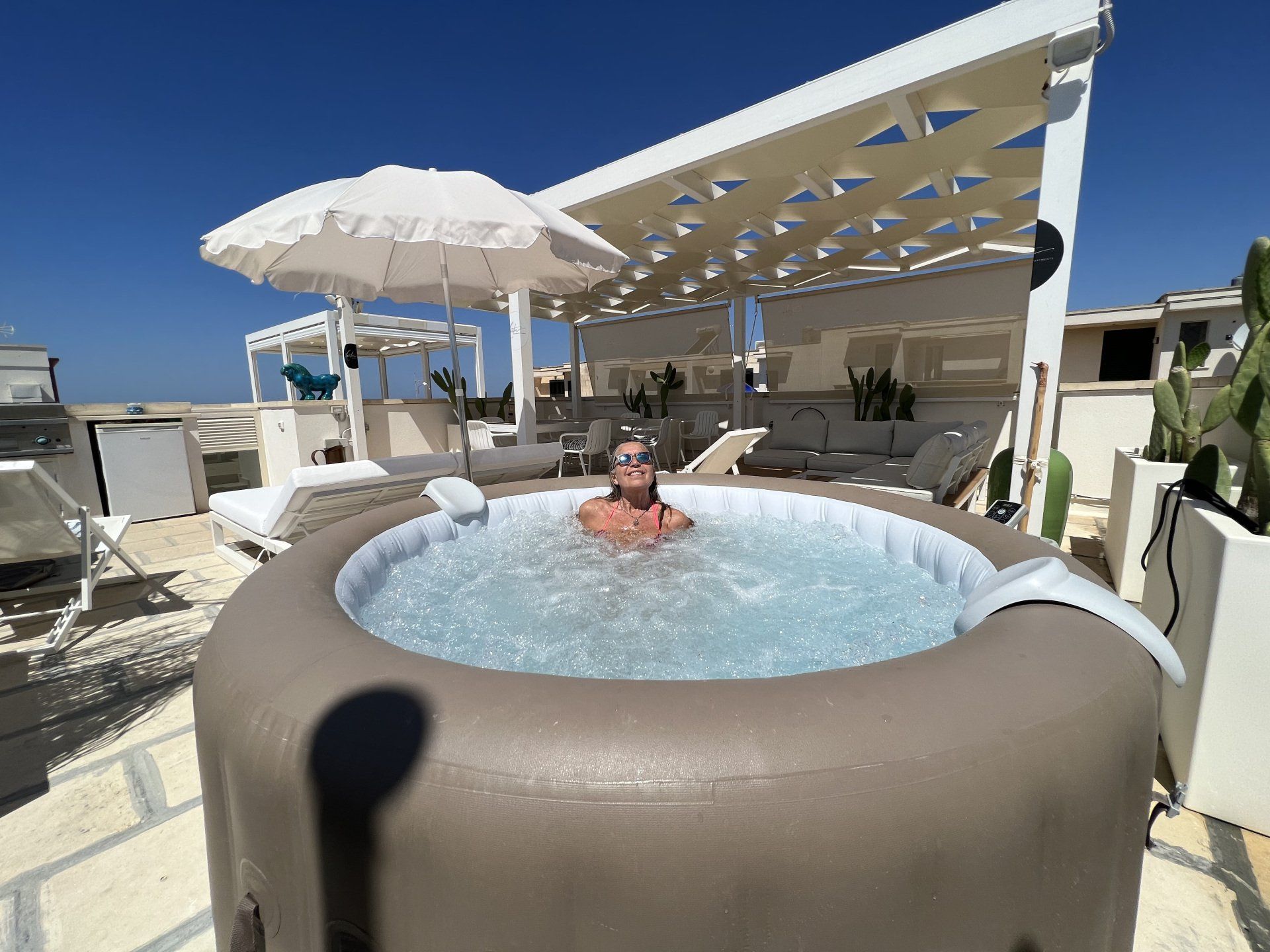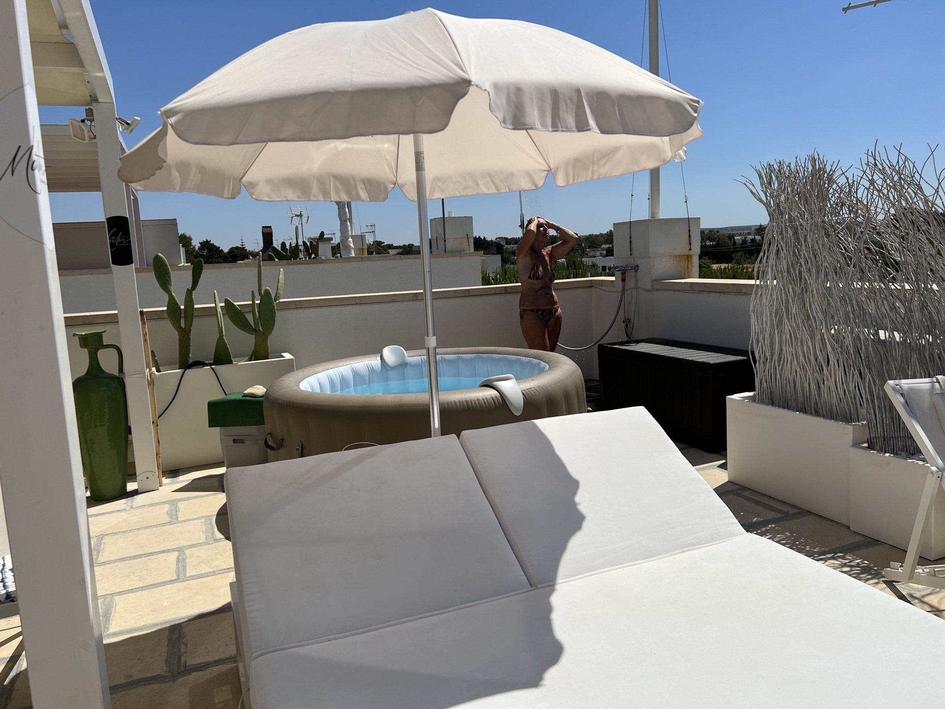 A disposizione degli ospiti che hanno riservato uno degli appartamenti TSG 1 o TSG 4 al piano superiore è disponibile ad un costo extra la grande terrazza solarium dove è anche possibile rilassarsi e rinfrescarsi nella piccola e divertente vasca idromassaggio.